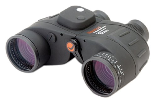 The Oceana Series from Celestron features waterproof models for marine use. All are rubber covered to protect against rough handling. All provide maximum optical performance with BAK-4 prisms and multi-coatings for sharp images with high contrast and resolution. Each model has a large, 50mm objective lens to offer maximum image brightness even in low light conditions, like dusk and dawn. PRODUCT FEATURES: Backlit illuminated liquid dampened magnetic compass - excellent navigational tool for land or sea; Horizontal and vertical etched reticle to help determine relative size of objects; Rangefinding dial calculates actual object distance or size; Completely waterproof - dry nitrogen charged and sealed with internal O-rings to prevent internal fogging - unaffected by climate and temperature changes; Individual eyepiece focus with diopter scale for quick and accurate focusing; Excellent depth of field for minimal focus adjustments; Nautical style padded canvas case and straps; Attached objective caps; Tripod adapter fitting for tripod mounting.