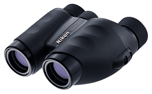 The new Travelite V series binoculars incorporate several new features designed to make them more user friendly while enhancing optical performance.Nikon Travelite V binoculars utilize precision ground, multicoated optics, and high index BaK4 prisms for true color rendition, maximum sharpness and enhanced light transmission. The new binoculars use aspherical eyepiece lenses which provide a very flat viewing field and offer markedly improved edge-to-edge sharpness over many conventional lenses.The new Travelite V features large, conveniently located central focus knobs and clicking diopters. Each model in the series features 25mm objective lenses for maximum light gathering.A new, ergonomically contoured, carbon-fiber body makes the Travelite V easy to use for long viewing sessions without physical fatigue. The lightweight body incases a rugged all-metal chassis and is covered with a durable black rubber armor that provides added shock resistance and a positive grip in slippery conditions.