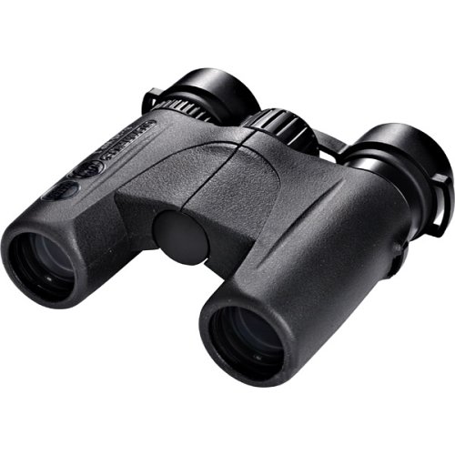 The Olympus Magellan 8x25 is very compact, but it doesn't fold up quite as tiny as double-hinged compact binoculars. If you don't mind the small size, overall the ergonomics and feel are quite good - better to me than the similar Pentax 8x25 DCF MC II. The big center focus wheel is nice but mine has little resistance. Wedging a small thin elastic behind it 'solved' this. There is just barely enough focus travel for me to reach focus on infinity without glasses, though I am very nearsighted. The click-stop detents of the twist-in/out eyecups have become mushy over time and no longer hold their position firmly. To focus farther out, you turn the focus wheel counter-clockwise; it's more intuitive to have it the opposite way. Excellent close-focus of about 7'. This binocular has just enough eye relief for me to see the entire field of view when I'm wearing my glasses. Though the field of view is 5.5º which is very narrow for an 8x binocular. For watching fast-moving action like sporting events or birds, you'll probably want something with at least around 8º FOV . Resolution ('sharpness') and freedom from chromatic aberration (false color) in the one I got is about average for an 8x binocular. It's water resistant to a shallow depth (like for quickly rinsing off dirt or sand), but don't expect truly water proof - few binoculars are. Comes with caps for the eyepiece end but not the objectives. But it does come with a neoprene case. If you can get the Magellan 8x25 for less than $100, it's a good buy for a travel binocular, mine is a constant travel companion.