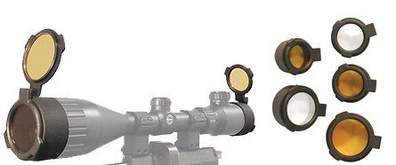 HF1005 Features: -Protect your scope against rain, dirt and dust while hunting and during storage. -Flip-up covers are manufactured out of a semi-flexible rubber collar and high quality clear and amber see through lens. -Used for scope diameter: 51 - 56mm.